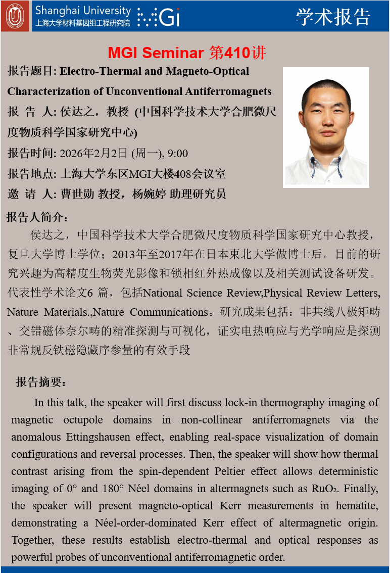 下一条:MGI Seminar 第409讲:袁喆 教授 (2026年1月15日 星期四 10:00)