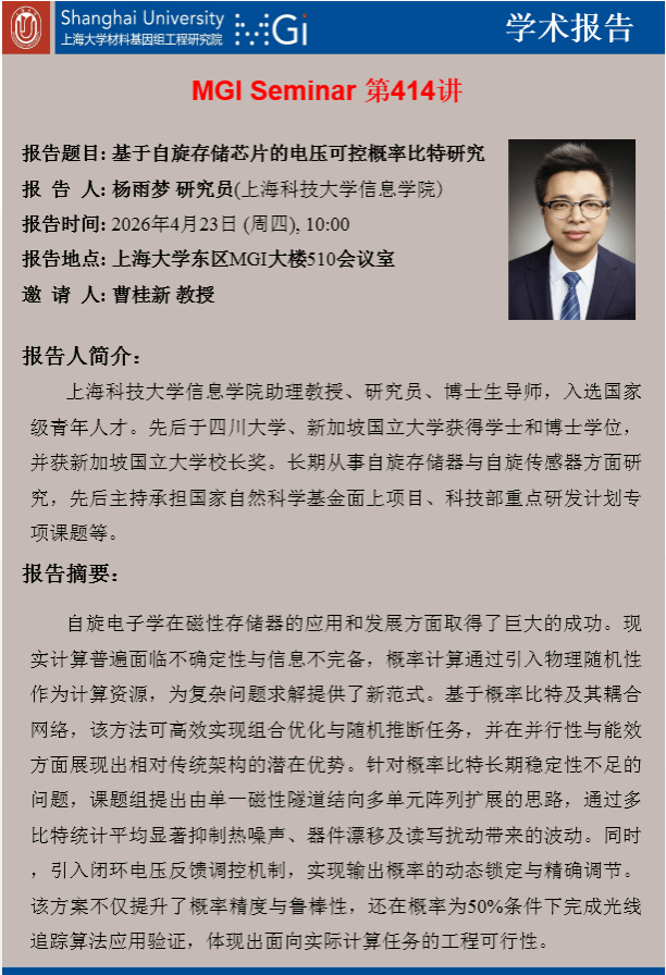 上一条:MGI Seminar 第415讲:杨洪新 教授 (2026年4月23日 星期四 15:00) 下一条:MGI Seminar 第413讲:Prof.Franck Gascoin(2026年4月13日 星期一 9:30)