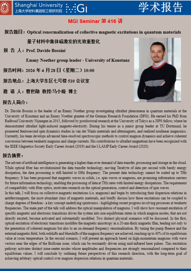 下一条:MGI Seminar 第415讲:杨洪新 教授 (2026年4月23日 星期四 15:00)